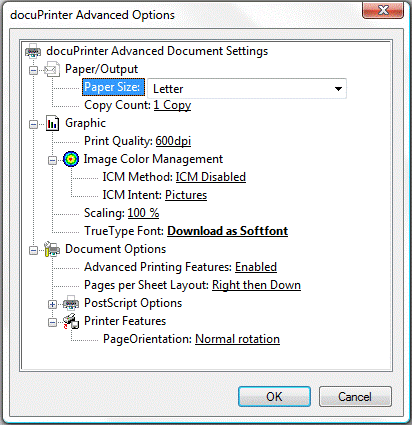 a. From your application print to docuPrinter;