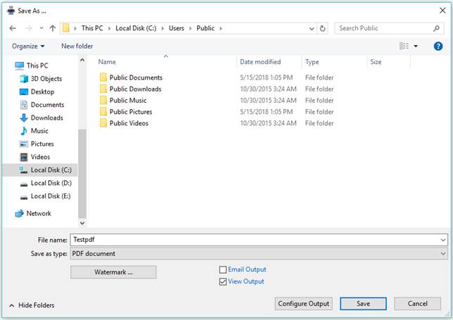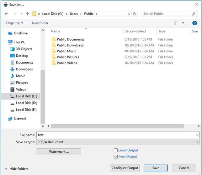 b. In the docuPrinter Save As screen click the Configure Output button;