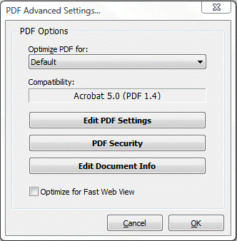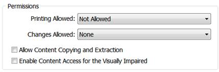 Selecting the Encrypt PDF Document checkbox will turn on the security options and apply them to the PDF file.