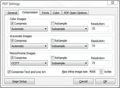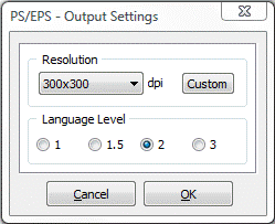 In this screen you can select output resolution and PostScript language level.