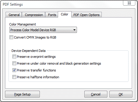 NOTE: Setting Default for the Magnification and Page Layout options uses the individual users' settings in their PDF viewer software.