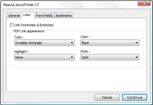 Enabling this option will force docuPrinter to convert footnotes and endnotes into PDF links to the respective citations.