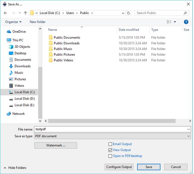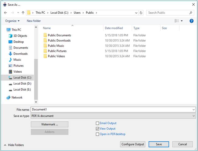 b. In the docuPrinter Save As window click the Configure Output button;