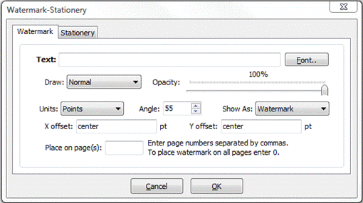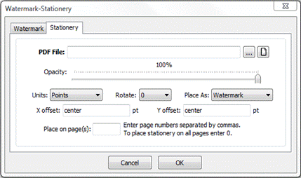 Place On - specifies the pages to stamp. Check "All pages" to place the stamp on all pages in the PDF file or "Pages" to specify the page numbers.