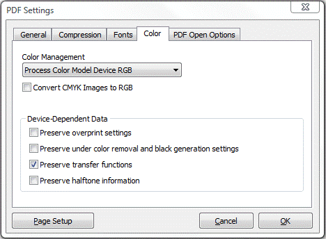 c. Text Color - use this option to define both text color and color space (Gray, RGB, CMYK).