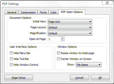 In case you would like to specify in greater detail parameters about quality and compression in the Optimization section position the quality cursor toward right for better quality and left for smaller size and lower quality then click the Options button. All compression settings are described in the Compress PDF files section below.