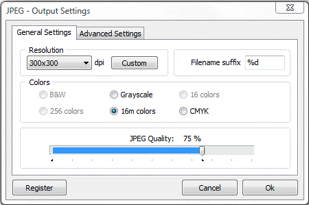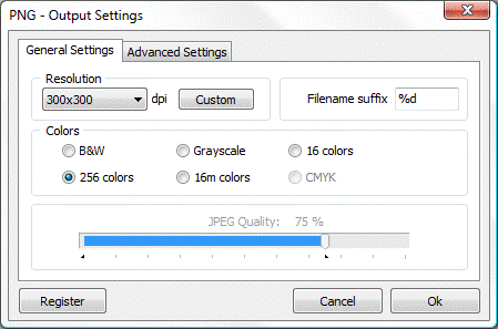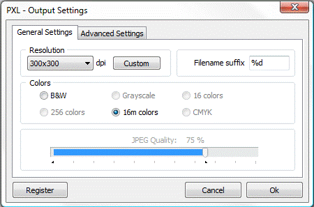 JBIG2 compression - designed for both lossless and lossy compression. Useful only for monochrome images, not for color images, grayscale images, or general data. Compared to CCITT, JBIG2 provides considerably better compression. The compression ratio it achieves depends strongly on the nature of the image. Even though the best compression level is achieved for images of text, JBIG2 also includes algorithms for compressing sections of an image that contain dithered halftone images (valid mainly for photographs). When JBIG2 is selected (lossy or lossless) you can set the Image quality using values from 0 to 10.