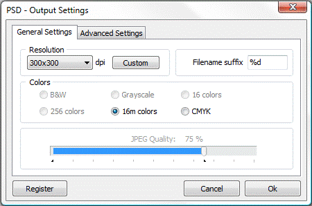 JPEG2000 compression - defines a wavelet-based method for image compression. Compared to other methods such as regular JPEG or CCITT, JPEG2000 gives a better size reduction. Although the filter can reproduce samples that are lossless compressed, it is recommended only for use with color and grayscale images and not for general data compression. When JPEG2000 is selected you can set the Image quality using values from 0 to 100.